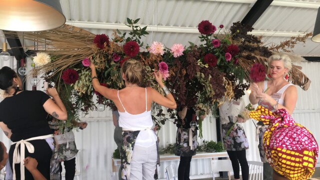 Our “office” for the 2 days of the course was at The Shed at Overgaauw. We were spoiled with culinary treats by the in-house chef with probably the best quiche, milk tart, lemon-drizzle cake and vegetable fritter we’ve ever had! With his Moroccan influence coming through strongly in all the dishes over the 2 days, we wish it didn’t have to end – both the food and being knee-deep in flowers!